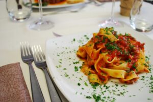 Il Ristorante Al Caminetto al piano terra saprà conquistarvi con i suoi piatti e sapori tipici, una cucina di territorio dove si esaltano gli ingredienti tradizionali come carne, tartufo, pasta. Il ristorante è a disposizione degli ospiti dell’hotel ma è anche aperto al pubblico. Scopri il nostro menu nella sezione dedicata alla pagina del Ristorante.